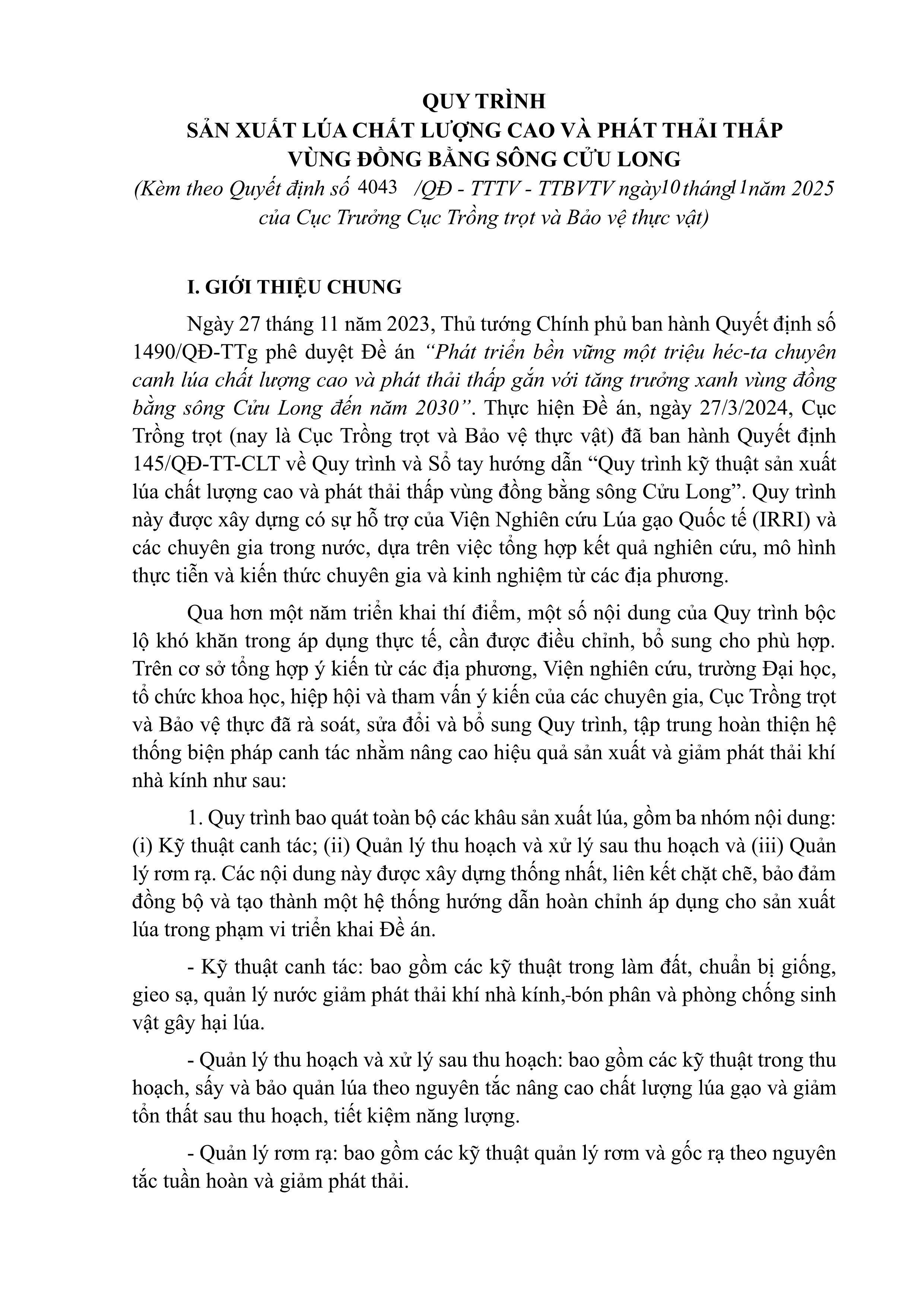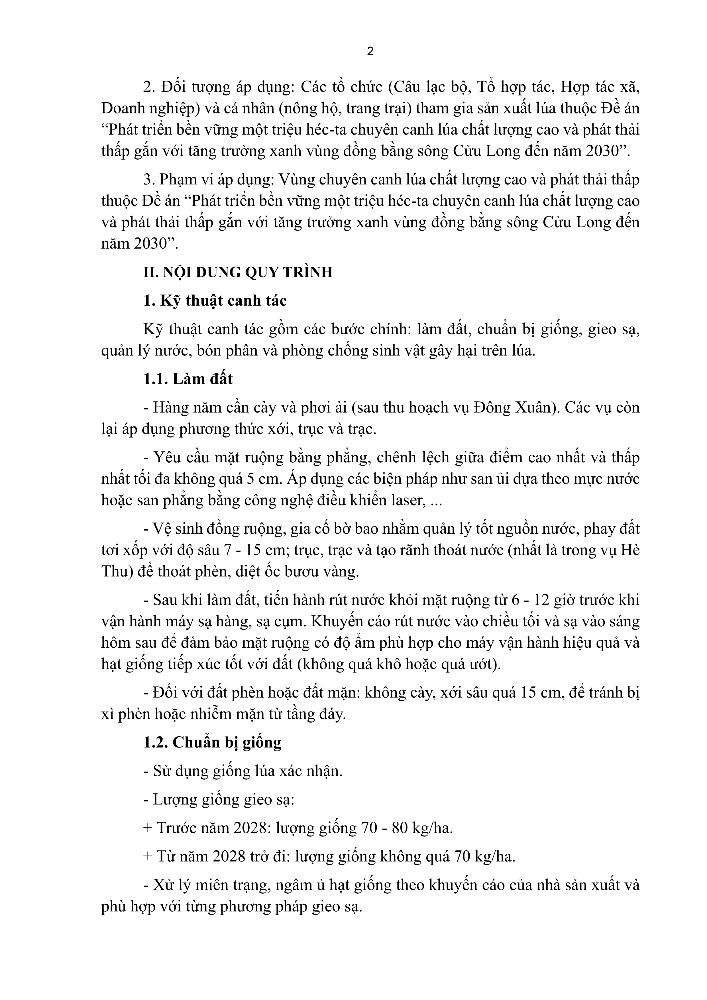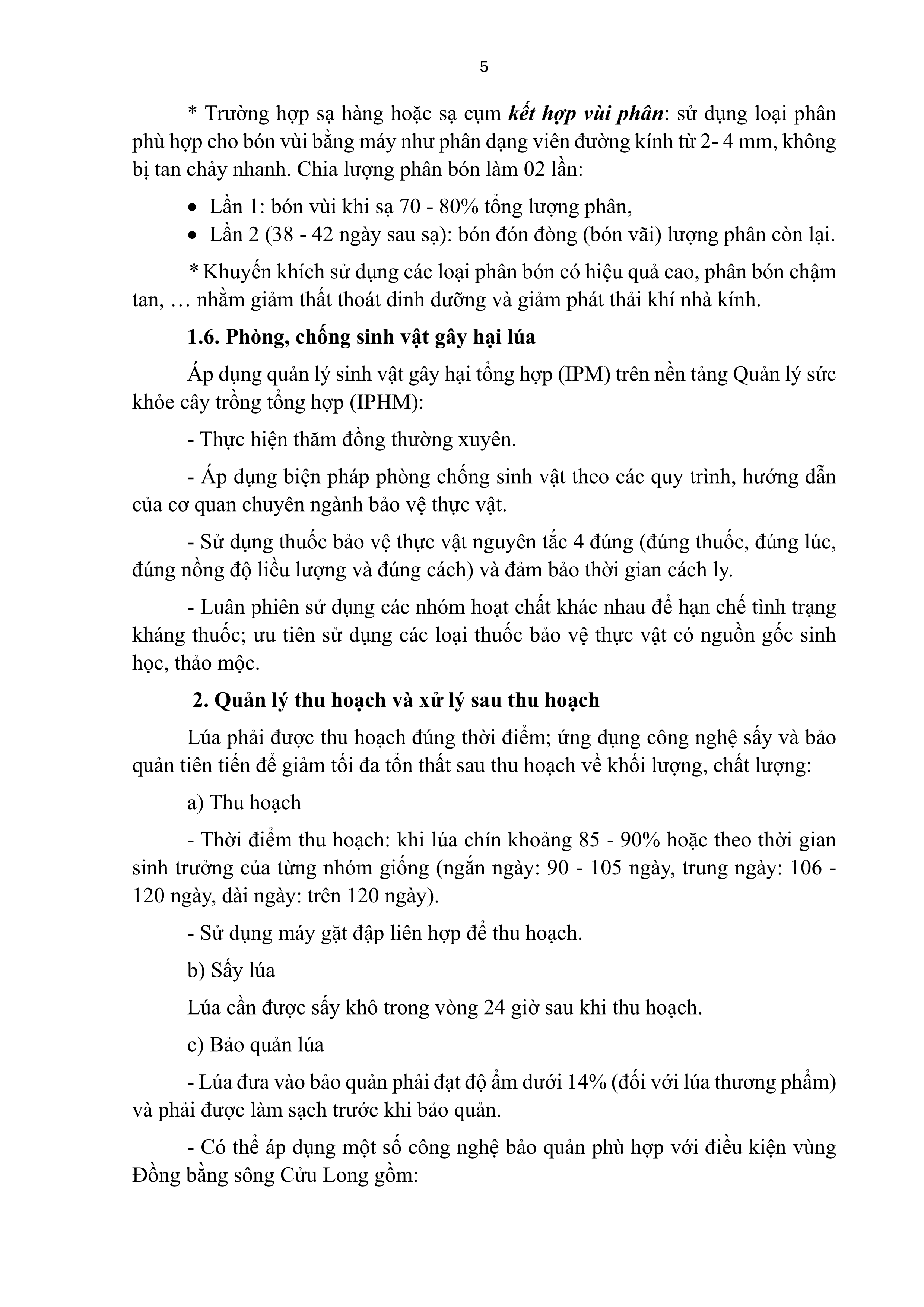 Quy trình sản xuất lúa chất lượng cao và phát thải thấp vùng Đồng bằng sông Cửu Long