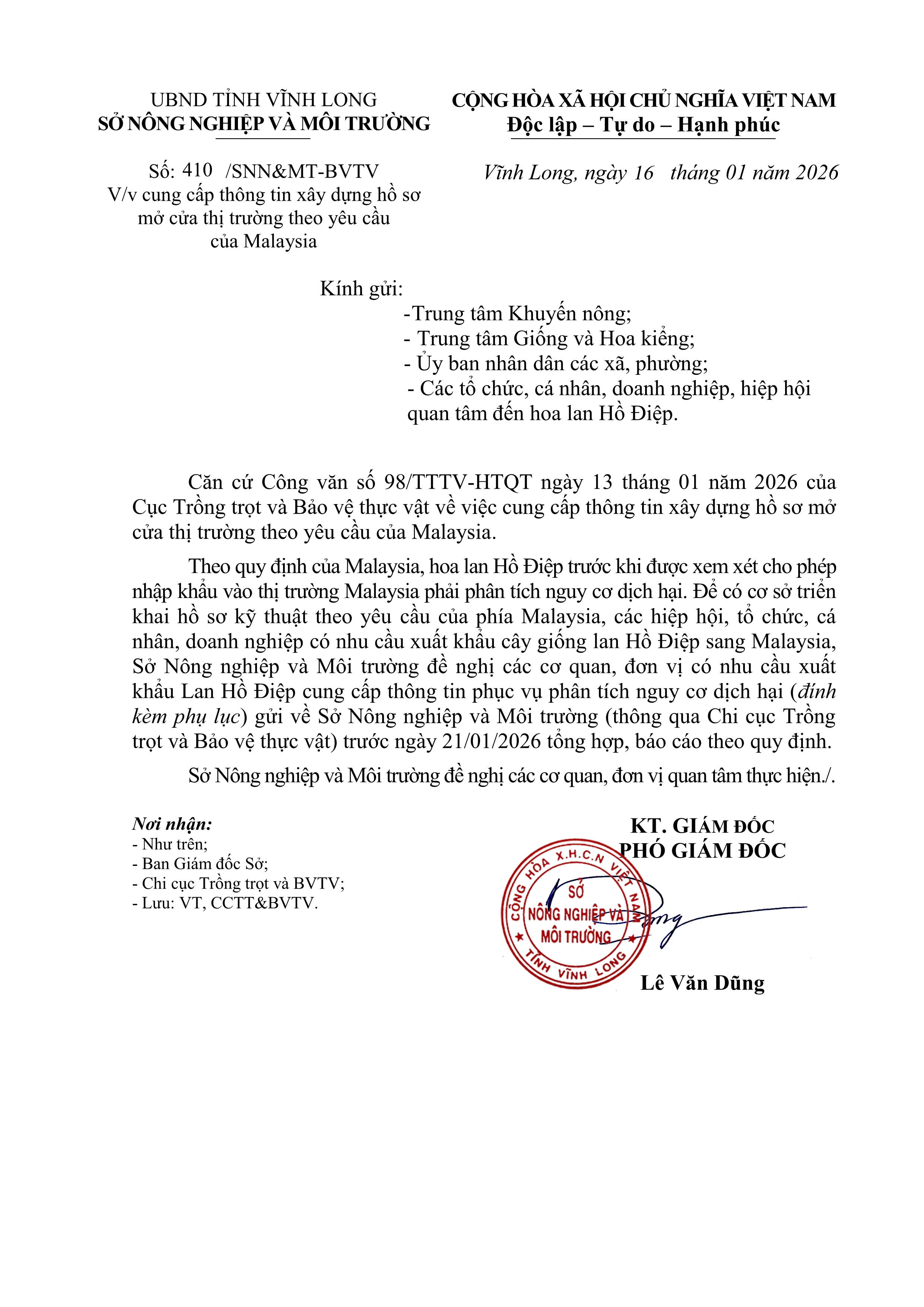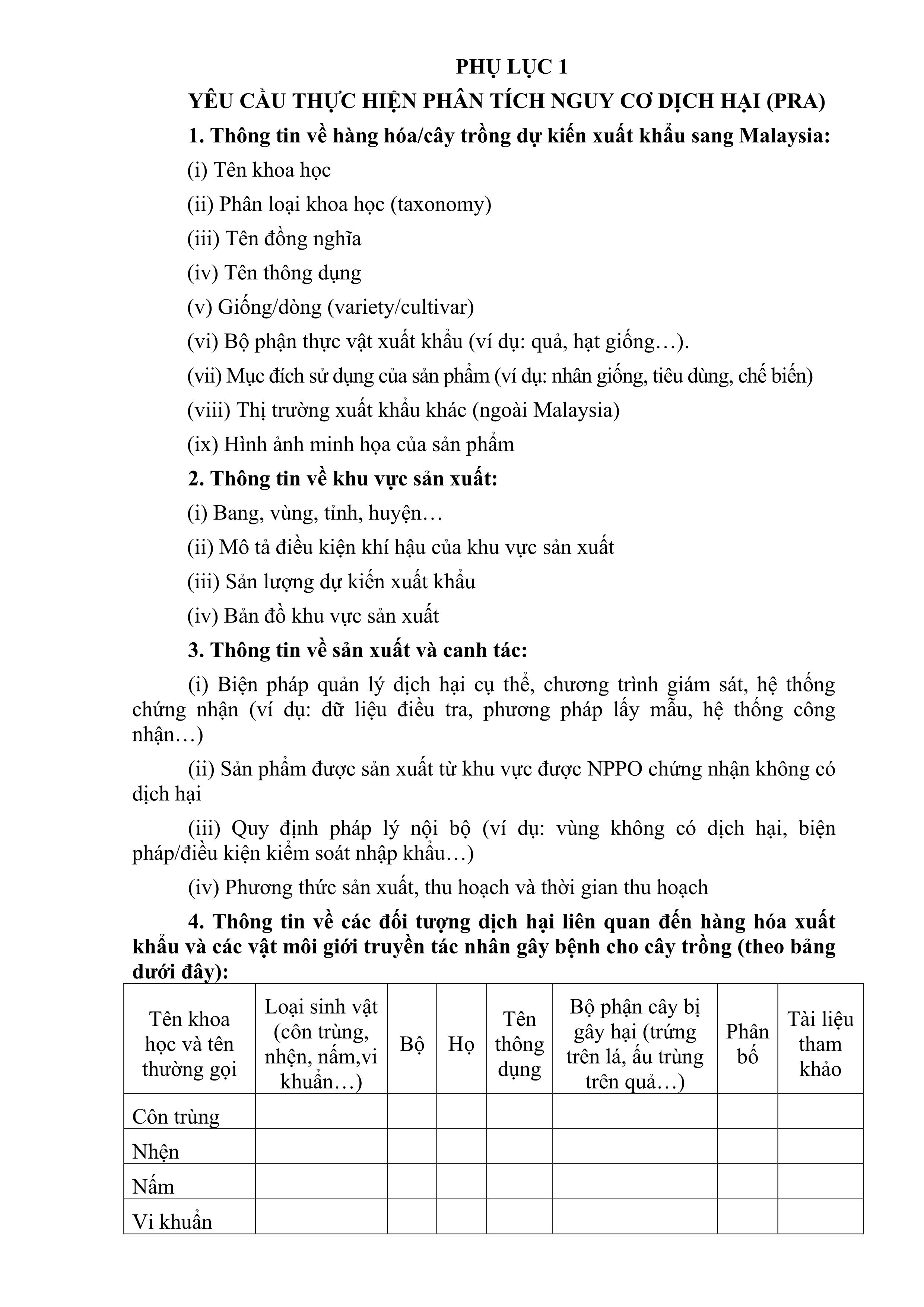 Cung cấp thông tin xây dựng hồ sơ mở cửa thị trường theo yêu cầu của Malaysia