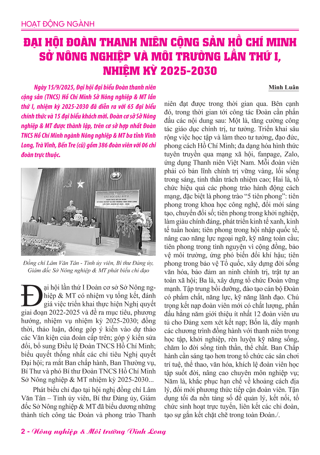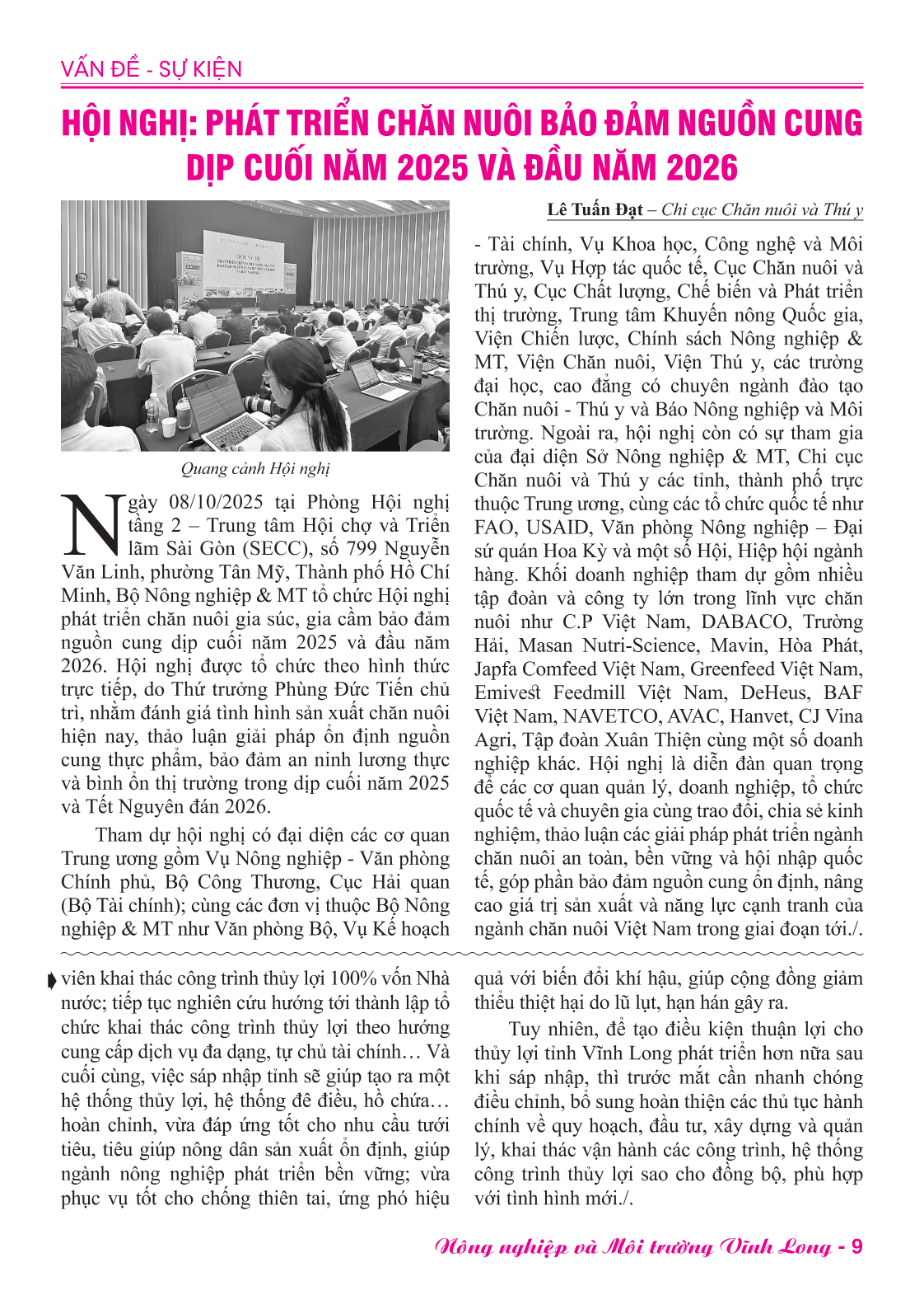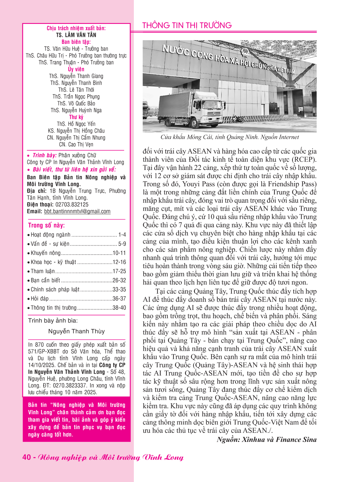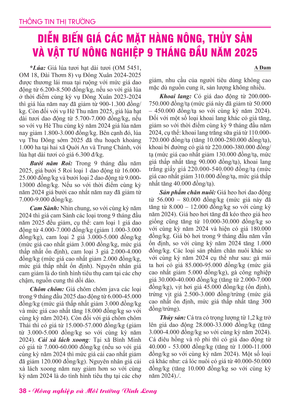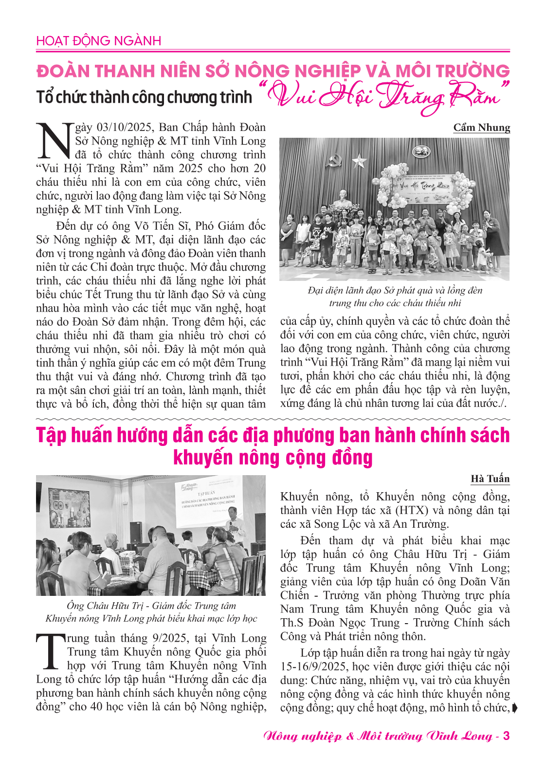 Bản tin Nông nghiệp và Môi trường Vĩnh Long tháng 9 + 10 năm 2025