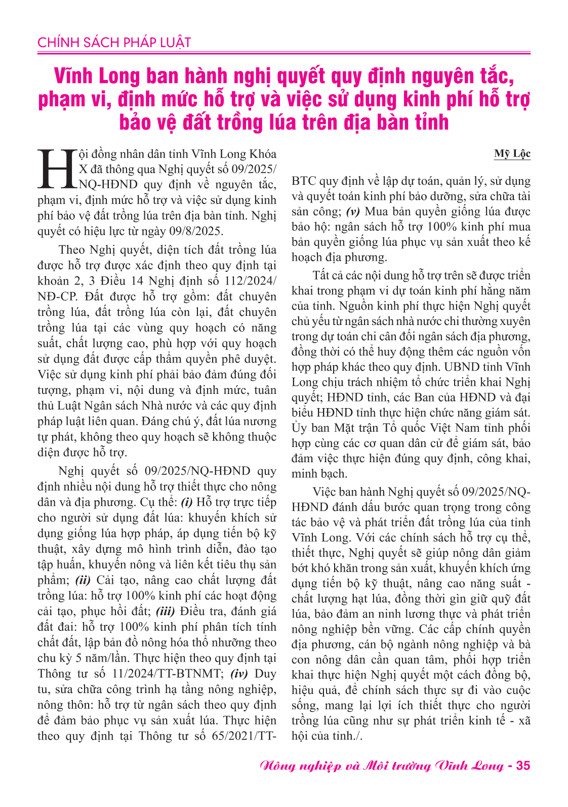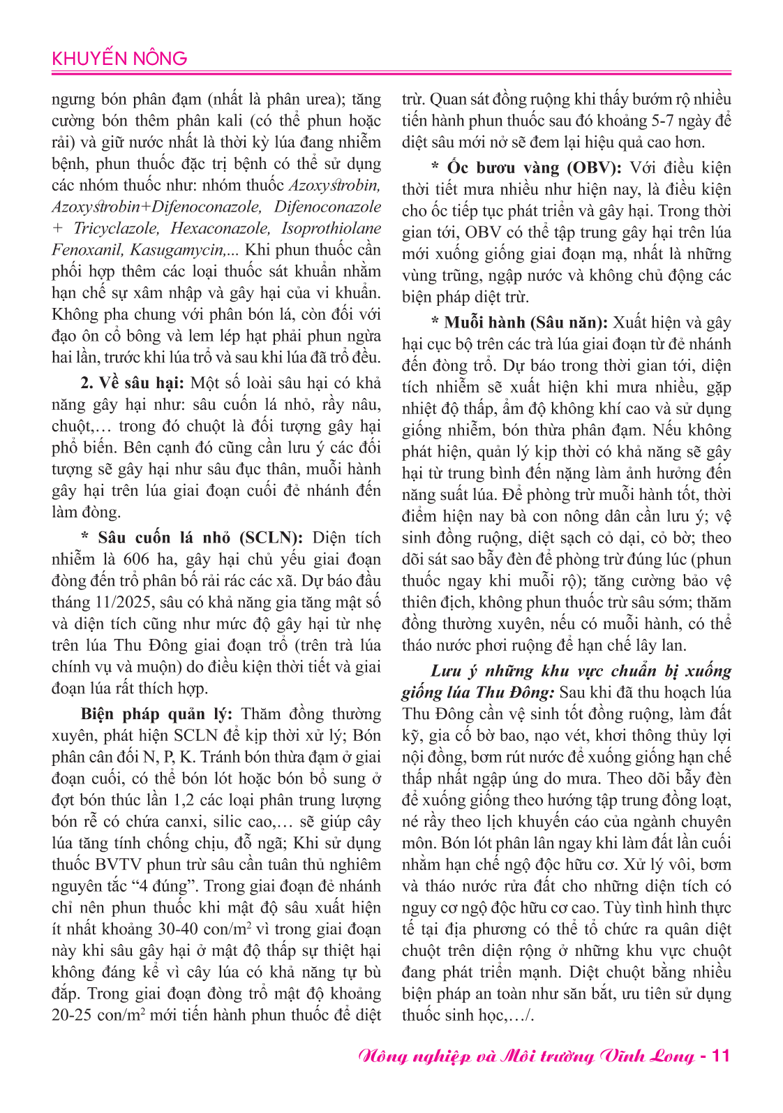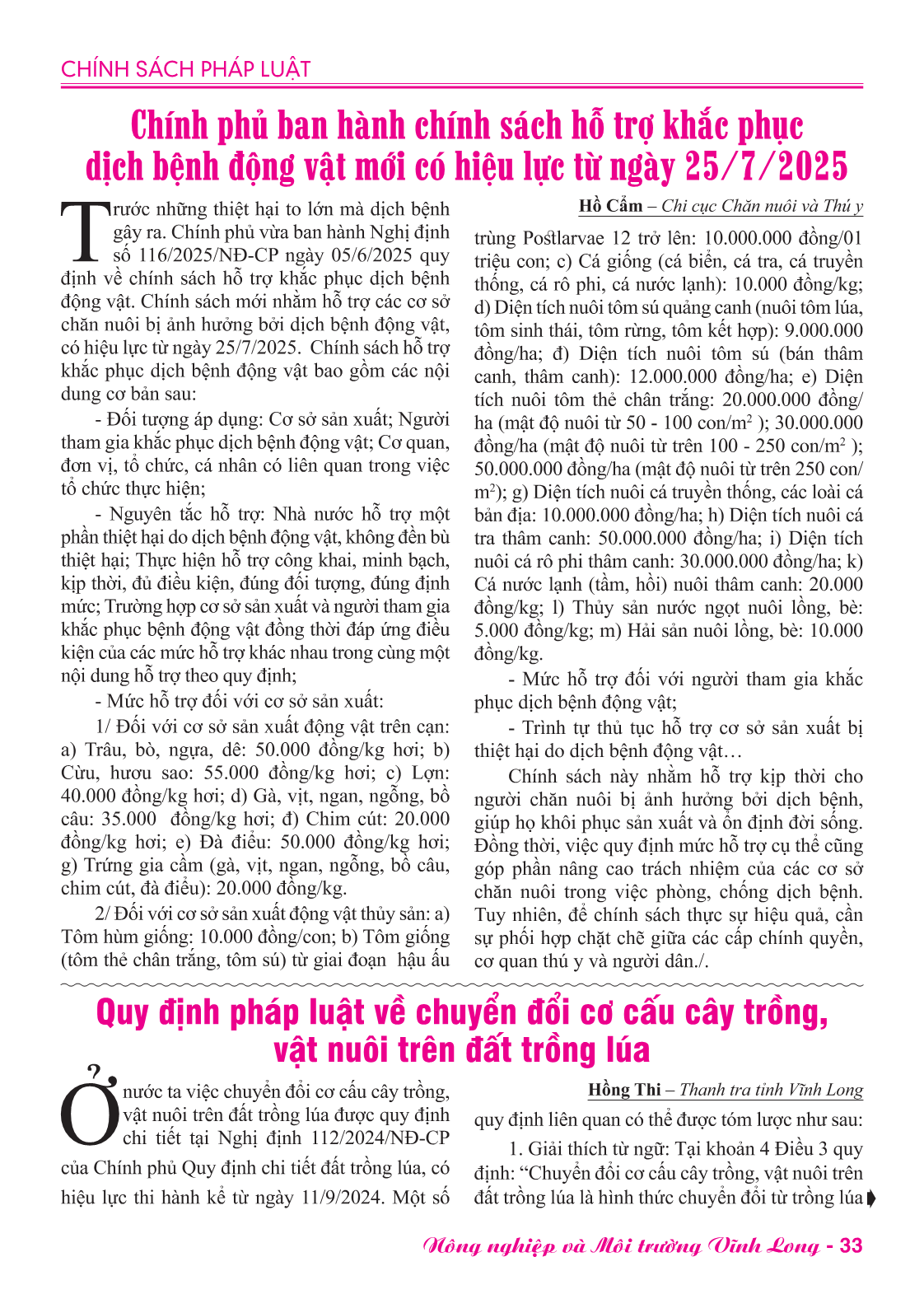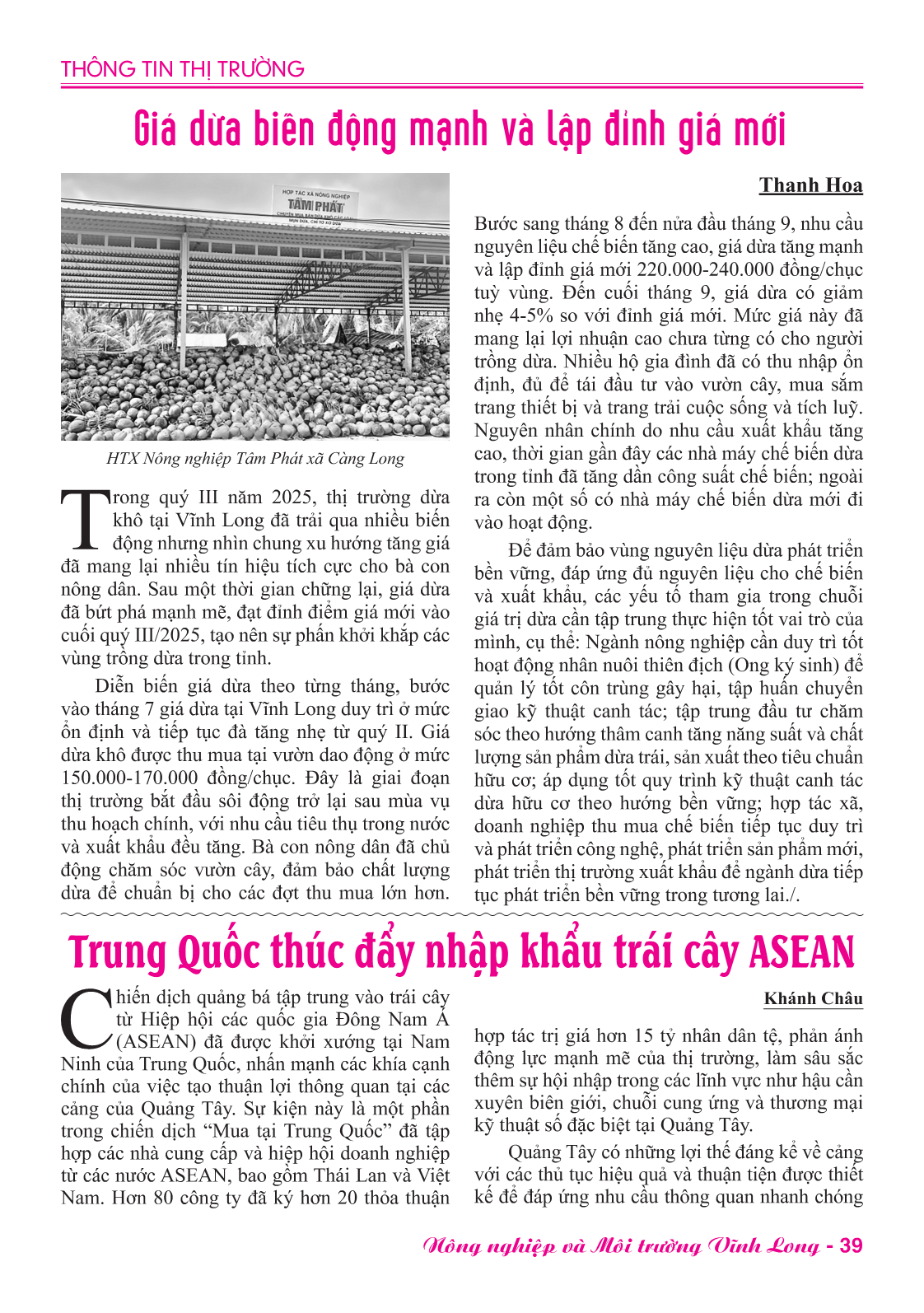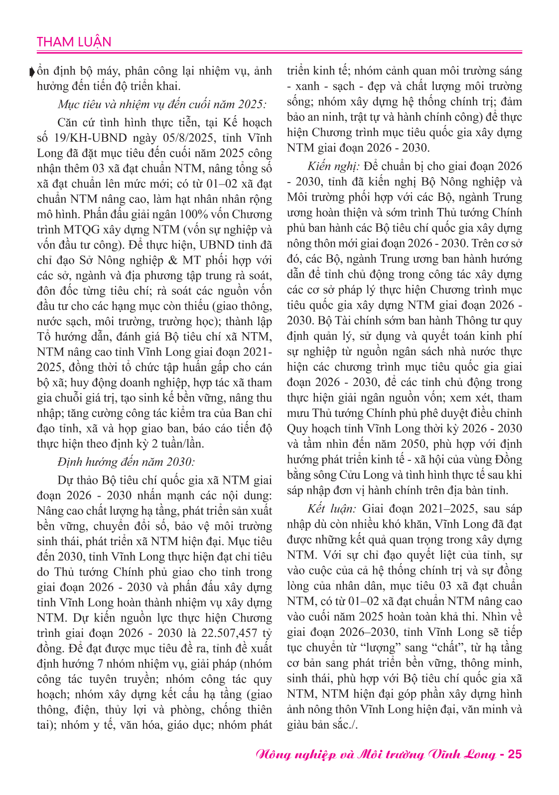 Bản tin Nông nghiệp và Môi trường Vĩnh Long tháng 9 + 10 năm 2025