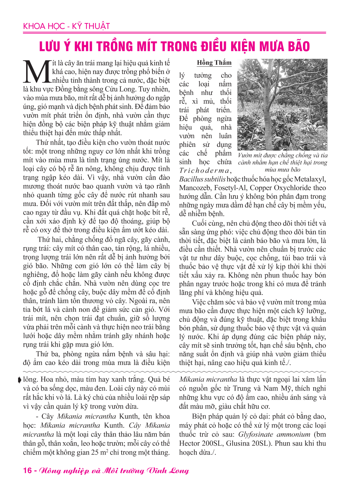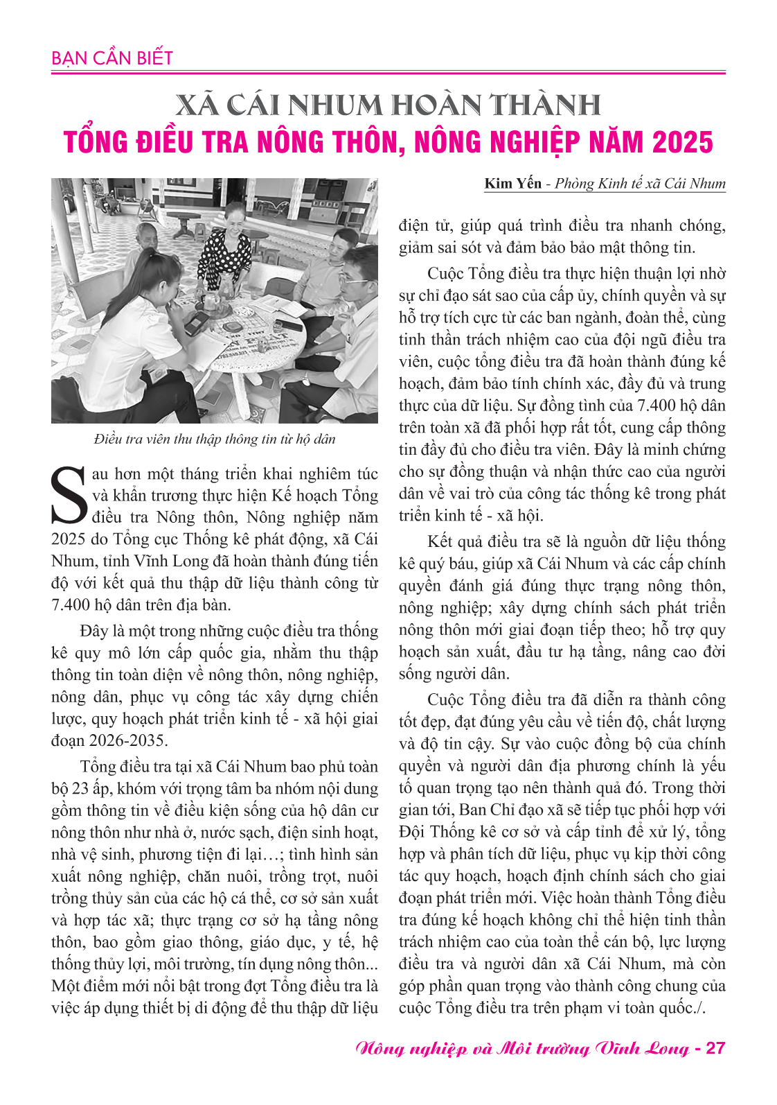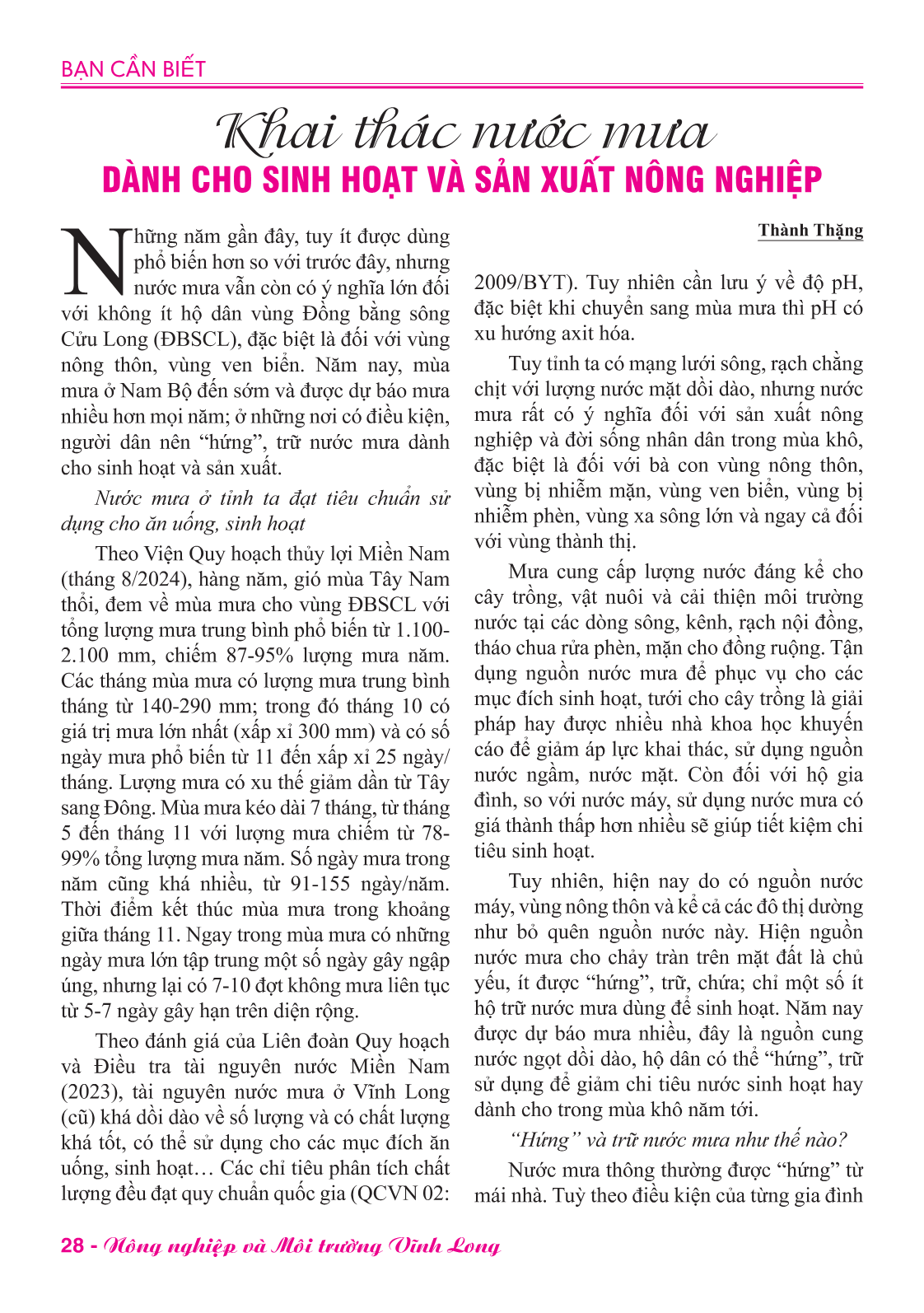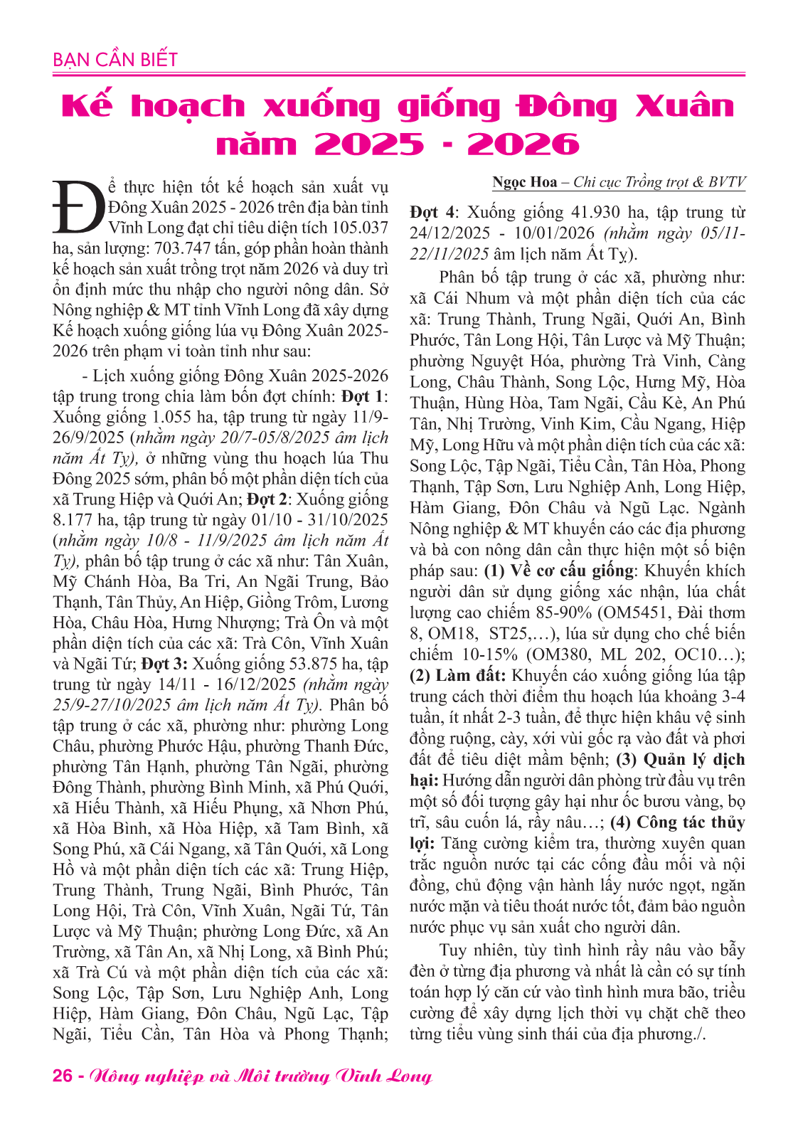 Bản tin Nông nghiệp và Môi trường Vĩnh Long tháng 3 + 4 năm 2025