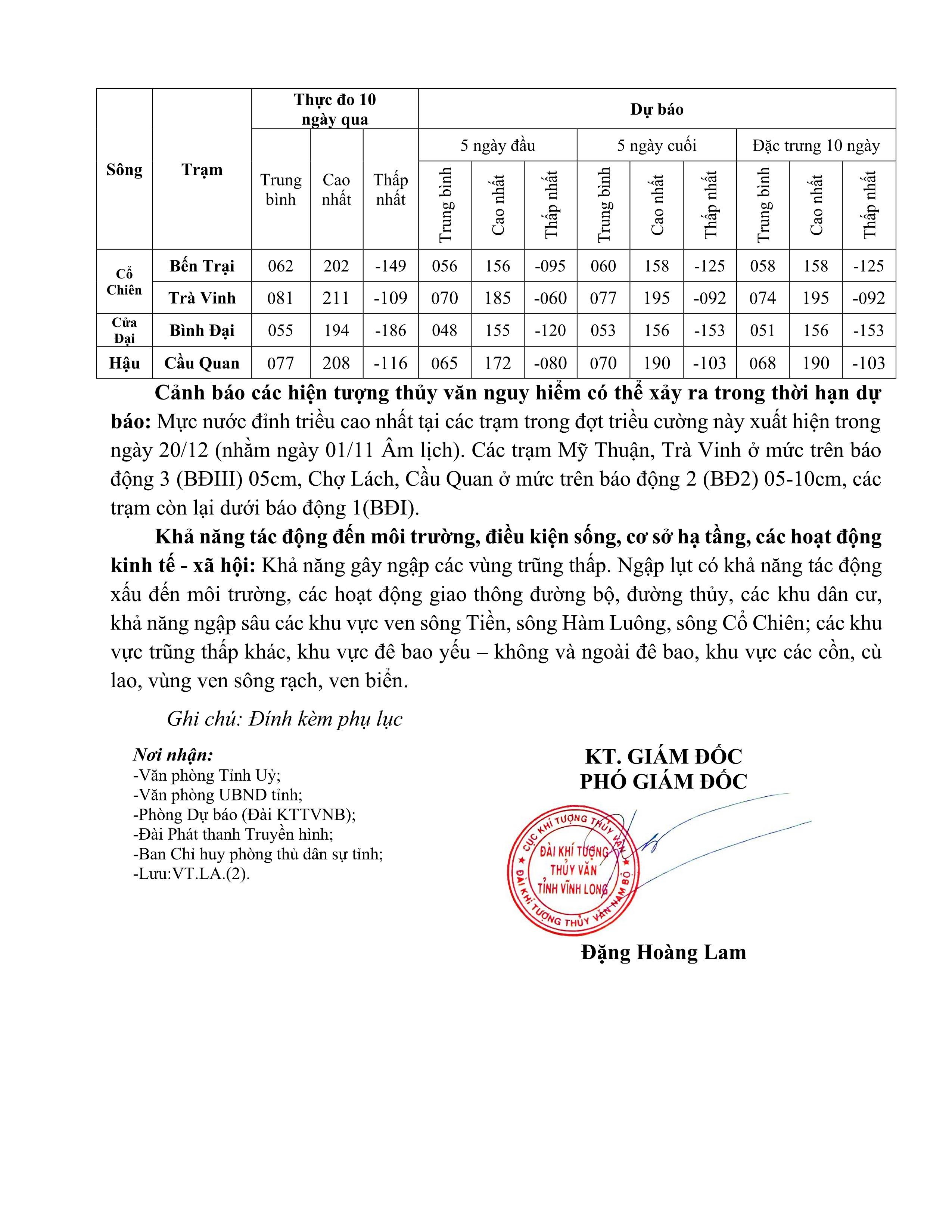 TIN CẢNH BÁO TRIỀU CƯỜNG (Đợt triều cường từ ngày 03 đến ngày 09/12/2025)